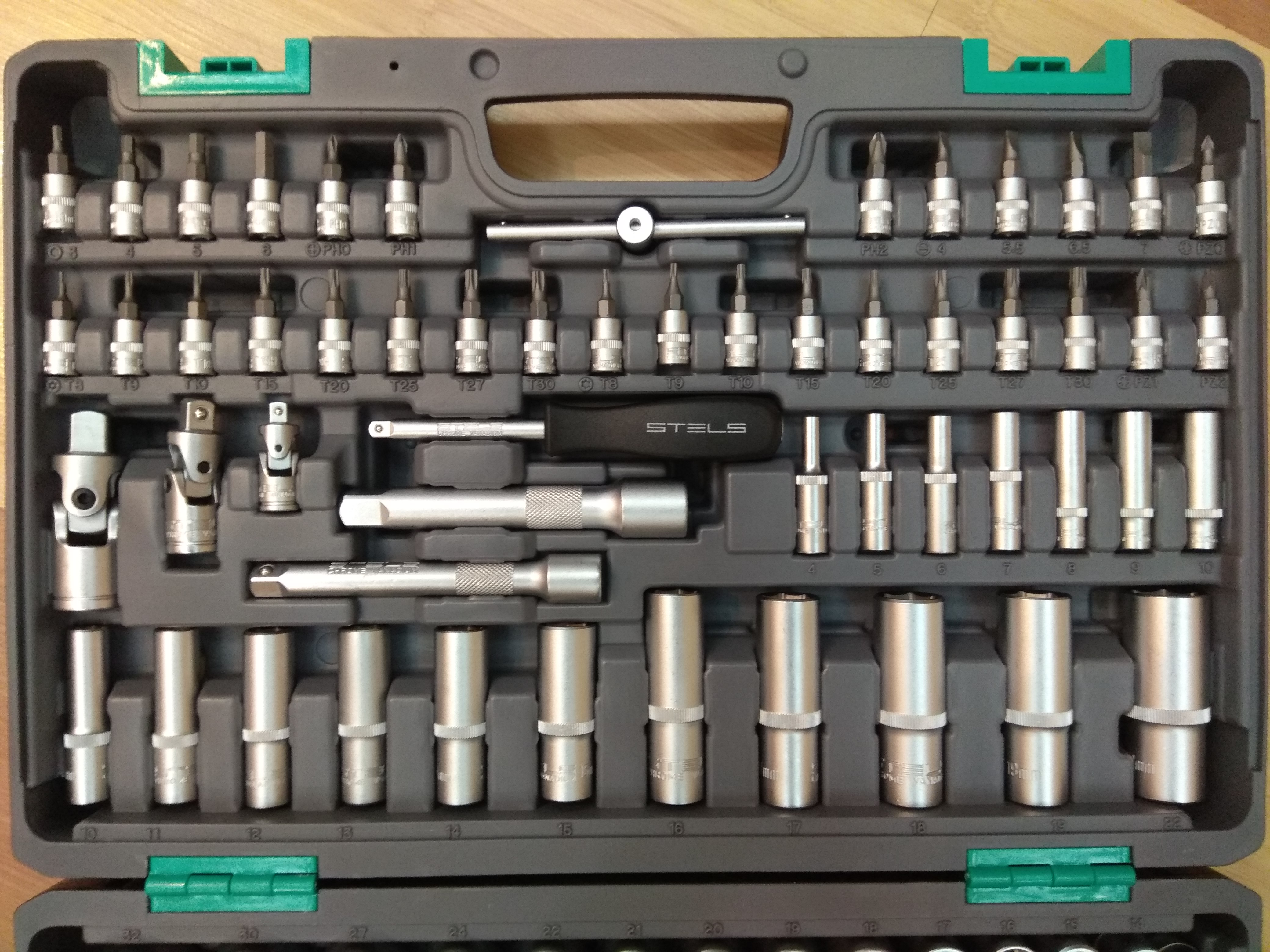 Жаль що нема у цьому наборі ключів рожково-накидних, а так ціна супер + бачу защолки металічні це супер. А скільки у наборчику одиниць ?